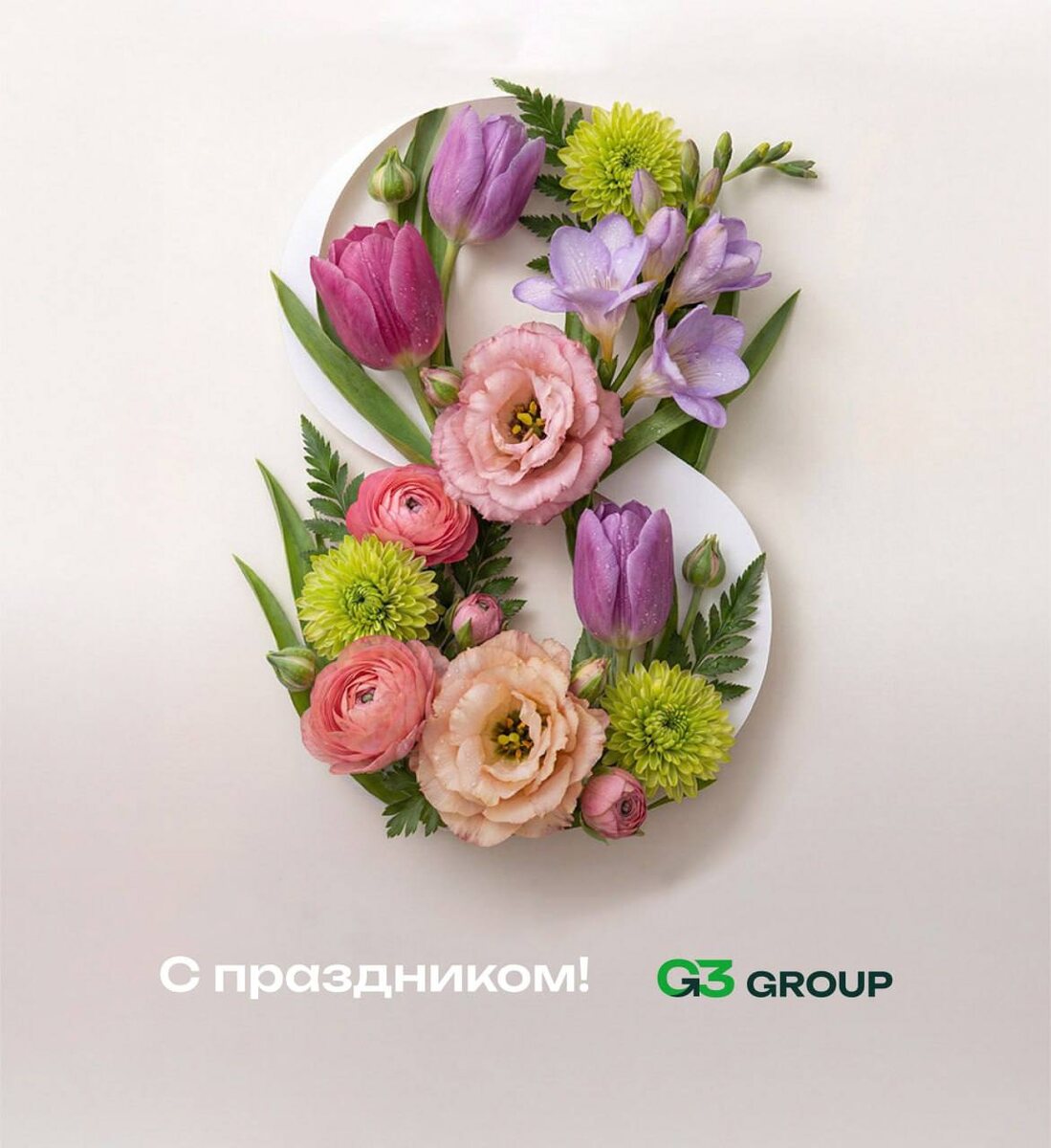 Дорогие дамы! В этот прекрасный день команда Джи Три поздравляет вас с 8 Марта. Пусть сбываются самые тёплые мечты, а в душе всегда цветёт весна 🌷 Спасибо, что окружаете этот мир заботой, теплом и любовью. С праздником! 💚