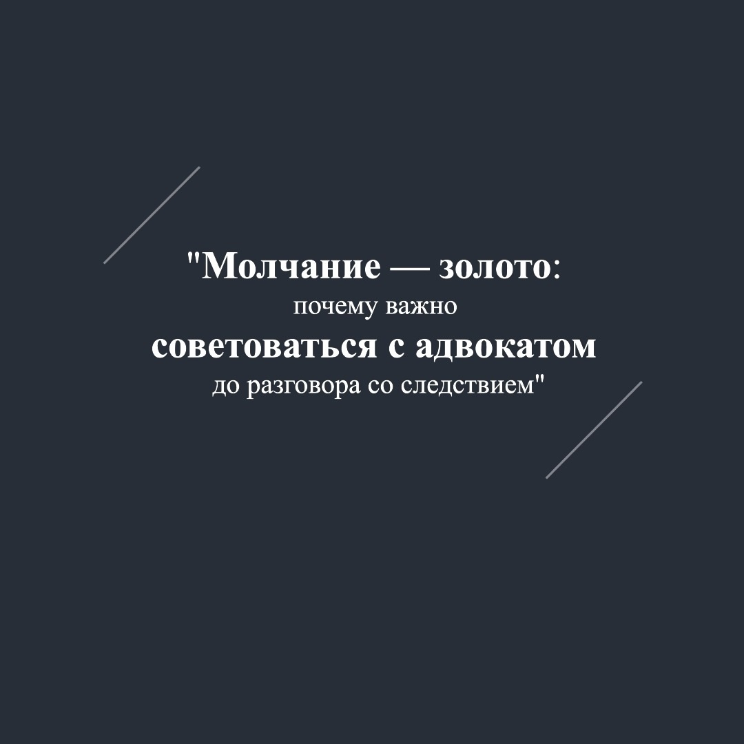 Мы все слышали фразу: "Вы имеете право хранить молчание". Но знаете ли вы, насколько это важно❓ Следствие и суд — это не место для импровизации. Каждое ваше слово может быть использовано против вас, даже если вы говорите с самыми лучшими намерениями. Адвокат — это ваш защитник, который знает, как правильно выстроить линию защиты, какие слова сказать, а какие — оставить при себе. Помните: 🚫Следствие не ваш друг. Его задача — собрать доказательства, и иногда они могут интерпретировать ваши слова не в вашу пользу.