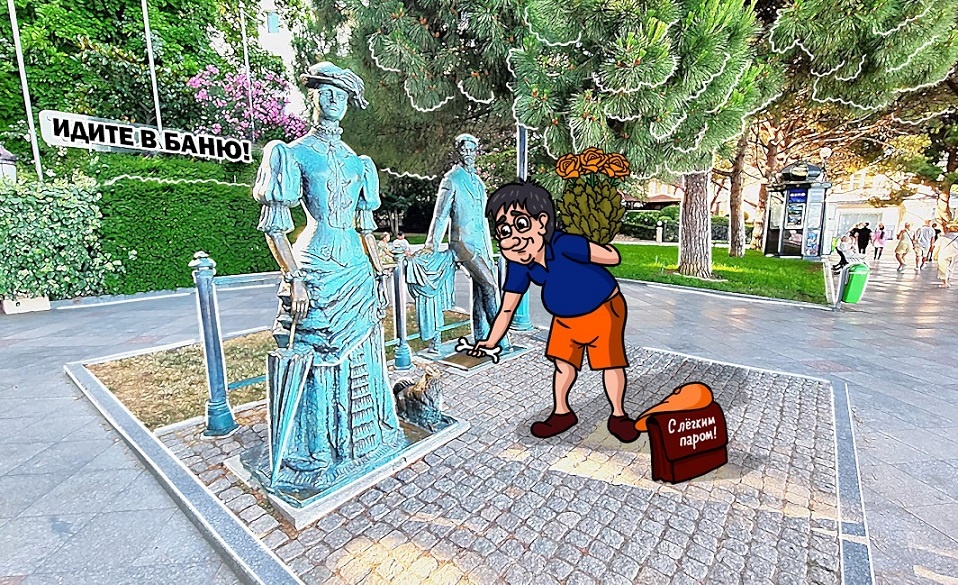 На самом деле это уже четвертое свидание нашего дамского угодника с Анной Сергеевной Трындец (по версии писателя Дидериц) на протяжении его путешествий. В третьей и четвертой наших книгах уже опубликованы очерки об этих встречах в городах Хабаровске и Астрахани. Готов и рассказ о случайном обнаружении экспозиции в Серпухове, он войдет в одну из заключительных книг нашего цикла. Иннокентий Павлович как-то пытался сосчитать, сколько на самом деле по России установлено гипсовых, бронзовых, чугунных и из иных видов материала двойников одной из самых известных героинь Антона Павловича Чехова. Если честно – запутался. Решили так: сколько попадется на пути – все наши! Кеша добавил: – Куда ступит нога Иннокентия – теперь наше… то есть в наших книгах! Автор от себя заметил: – Где-то я такое уже слышал выражение, но про русского солдата. То ли сказание, то ли высказывание? Ну да ладно… записал и эту реплику до кучи. Впервые в наших книгах встреча с дамочкой и ее собачкой была запланирована. А ка