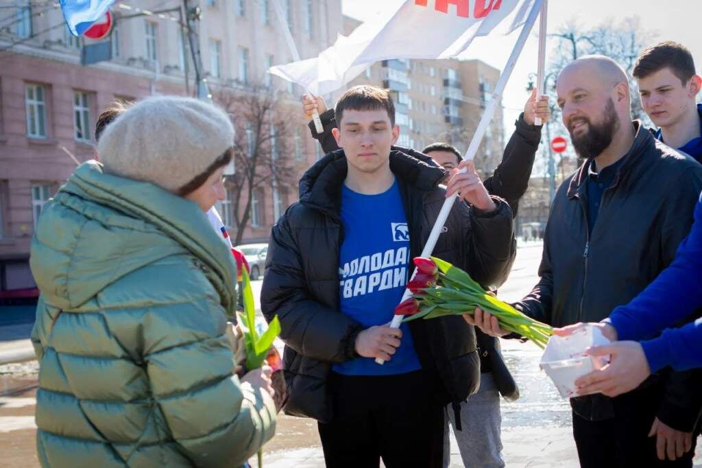 В Курске активисты "Молодой Гвардии" и мэр поздравили горожанок с 8 Марта