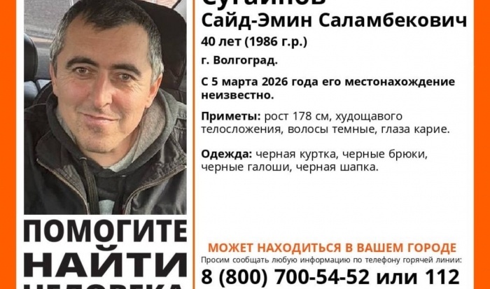 Его местонахождение неизвестно с четверга, 5 марта. В Волгоградской области волонтеры поискового отряда «ЛизаАлерт» разыскивают 40-летнего Сайд-Эмина Сугаипова. Он пропал без вести в четверг, 5 марта, и с тех пор его местонахождение остается неизвестным. В день исчезновения мужчина был одет в черную куртку, такого же цвета брюки и шапку. На ногах у него были обуты черные галоши. Приметы пропавшего: рост 178 см, нормальное телосложение, темные волосы и карие глаза. Если жители или гости региона владеют какой-либо информацией касательно местонахождения Сайд-Эмина Сугаипова, они могут передать ее по телефонам 8 (800) 700-54-52 или 112.