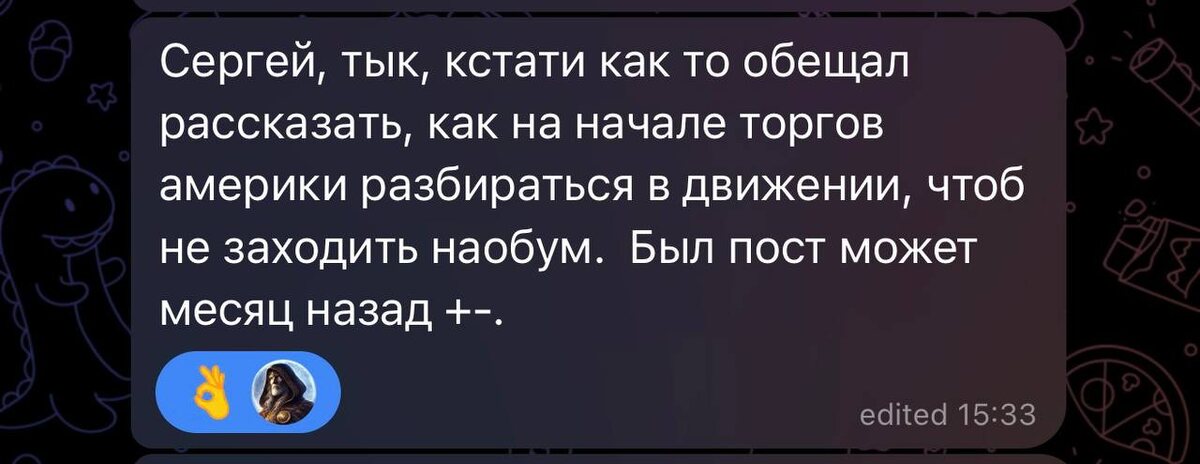 Коллеги, недавно, вот, спросили — как понять движение рынка в начале американской сессии. Потому что именно в этот момент на рынок приходит основной объем и начинается настоящая игра крупных денег. Ошибка, которую делают многие — пытаться угадать направление сразу на открытии. В 90% случаев это просто лотерея. Почему? Первые минуты американской сессии — это не тренд. Это перераспределение ликвидности. Фонды, маркетмейкеры и алгоритмы в этот момент: — снимают ликвидность со стопов — закрывают часть позиций Европы — тестируют уровни — формируют диапазон Поэтому рынок часто делает резкое движение вверх или вниз, которое выглядит как начало импульса… а через 10–20 минут разворачивается в другую сторону. Я для себя использую простой принцип. Первые 10–20 минут — это наблюдение, а не торговля. Что я смотрю в этот момент: 1. Где формируется первый импульс после открытия 2. Где рынок снимает ликвидность (локальные хаи или лои) 3. Появляется ли возврат обратно в диапазон Очень часто