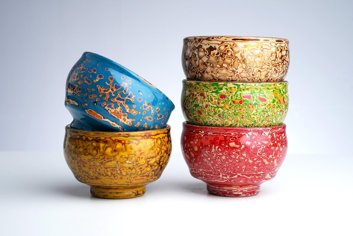 Создание этих пиал — очень долгий и трудоёмкий процесс. Вначале наносят один слой глазури, запекают, и далее сошлифовывают, пока не покажется предыдущий слой. И так, из раза в раз, наносят глазурь и шлифуют. Все пиалы из подборки: 1. Пиала № 689; 2. Пиала № 685; 3. Пиала № 682; 4. Пиала № 683; 5. Пиала № 684. Для получения дополнительной информации, фотографий или видео, пожалуйста, напишите нам на почту chaekshop@chaekshop.ru, указав номер пиалы и свои пожелания. Мы всегда на связи! 🌸 Соберите 5 цветочков и получите подарок! #посуда@chaekshop