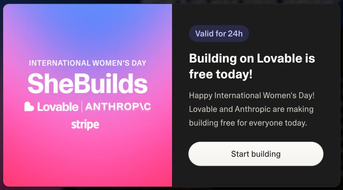 Акция от Lovable на 24 часа можно генерировать идеи и вайбкодить без лимитов
