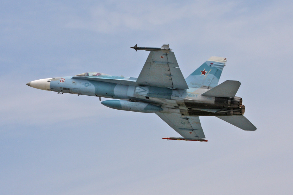 F/A-18 — классический палубный истребитель, более лёгкий, с меньшей нагрузкой на крыло, способный творить чудеса на виражах. Плюс AIM-9 Sidewinder — ракета малой дальности с инфракрасным наведением, которая не требует подсветки цели. Пустил — и забыл, она сама найдёт, куда лететь.