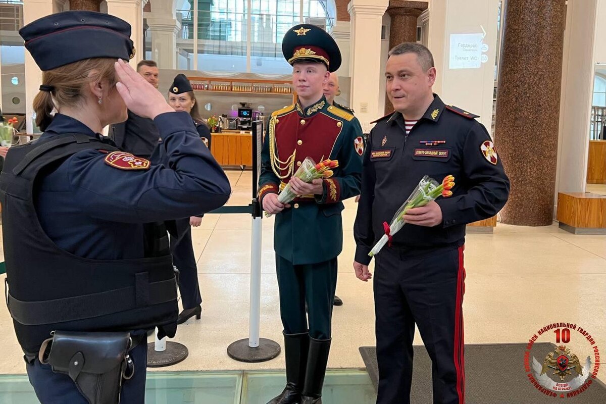 Офицеры Росгвардии поздравили хранительниц Эрмитажа с 8 Марта