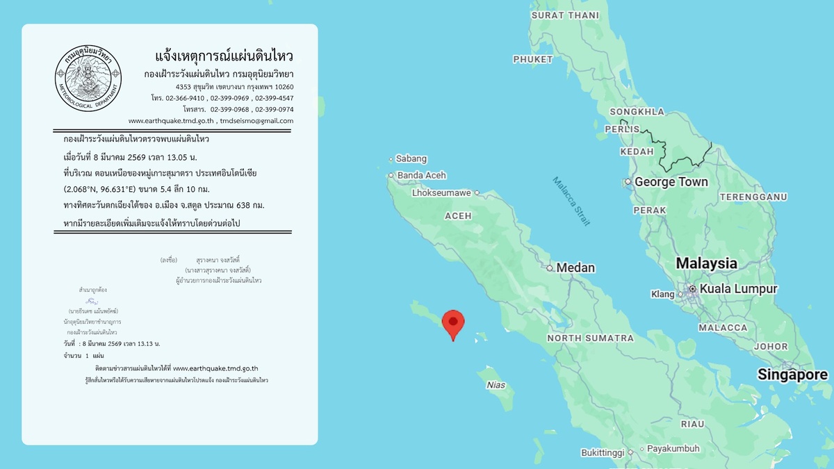 Землетрясение магнитудой 5,4 произошло днем 8 марта в районе 📍индонезийского острова Семелуэ в 660 км к югу от Пхукета. Подземные толчки были сильными, но угрозы цунами не возникло. При этом эпицентр находился практически в одной точке с эпицентром землетрясения, вызвавшего катастрофическое цунами 2004 года. Как следует из отчета сейсмологов Метеорологического департамента Таиланда (TMD), землетрясение на Семелуэ было зафиксировано в 13:05 дня 8 марта по тайскому времени. Гипоцентр толчков находился на глубине порядка 10 км. О повторных толчках сейсмологи TMD не сообщали. Во время разрушительного землетрясения 26 декабря 2004 года остров Семелуэ находился практически в эпицентре (порядка 60 км) и принял на себя удар цунами во всей его полноте. При этом на острове погибли всего 7 человек, хотя на нем находилось порядка 70 тыс. Также в течение дня 8 марта произошли два небольших землетрясения на территории Таиланда, 📍в материковой части провинции Сураттхани. Толчки магнитудой 2,9 и