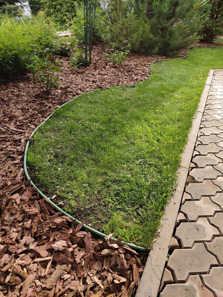 Для разграничения участков используем такие бордюры. Они выглядят аккуратно и не выбиваются из общей картины.