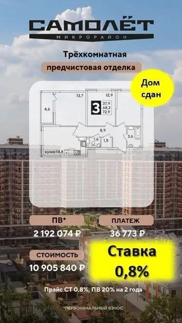 ? 💔 Этот вопрос бьёт под дых сильнее любого кризиса. Когда дети растут, а квартира — нет. Когда вещи в шкаф уже нужно забивать ногой, а единственный способ побыть в тишине — закрыться в ванной. Вы понимаете, что нужна трешка. Но как только открываете ипотечный калькулятор — становится не по себе. Отдавать по 80-100 тысяч в месяц и при этом на что-то делать ремонт? Миссия кажется невыполнимой. А теперь вдохните. Есть решение, которое «схлопывает» все страхи: В сданном доме ЖК «Самолет», в Краснодаре, у меня есть просторная 3-к квартира (72,9 м²) с уникальными условиями на первые 2 года. 🔥 Ставка 0,8% Ваш платеж составит всего 36 700 ₽ в месяц. Это меньше, чем аренда! Пока вы спокойно делаете финишную отделку (ведь грязные работы уже сделаны — отделка предчистовая), ваш бюджет не трещит по швам. Вы не выбираете между «купить плитку» или «отвезти детей на море». Цифры для семейного совета: — Площадь: 72,9 м² (хватит всем!) — Первоначальный взнос: 2 192 000 ₽ — Платеж на 2 года:
