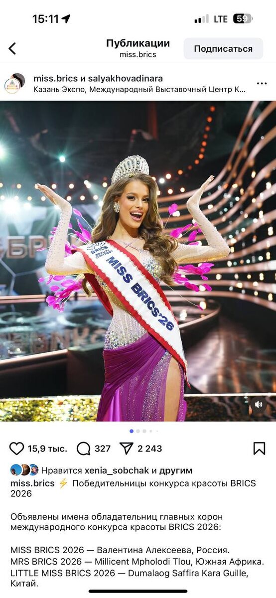 😍 «Мисс БРИКС» исеменә лаек булучы туташ исеме билгеле 👇🏻