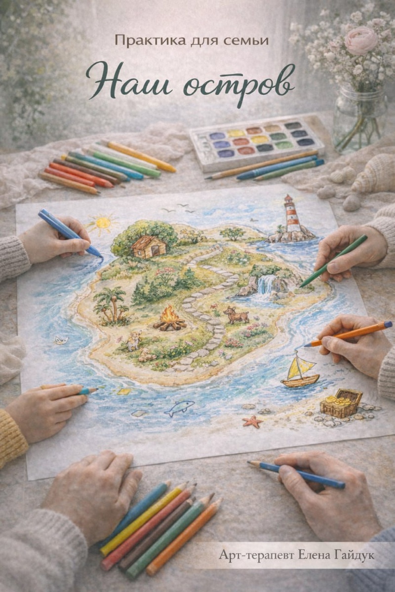 Предложите каждому в семье представить, что вы создаёте свой остров. Это место, где вам вместе спокойно. Каждый рисует на этом острове то, что для него важно: 🌿 дом 🌿 дерево 🌿 море 🌿 костёр 🌿 животных 🌿 дорогу 🌿 любое место силы Можно рисовать рядом. Можно соединять рисунки. Можно добавлять друг другу. Когда остров будет готов — посмотрите на него вместе. И задайте друг другу три простых вопроса: — где на этом острове тебе лучше всего? — что на острове сделал ты? — что здесь помогает нам быть вместе? когда закончите, произнесите одну фразу: «На нашем острове я чувствую…» Очень часто дети говорят вещи, которые взрослые давно не слышали. И этот лист можно оставить дома как напоминание о вашем острове.