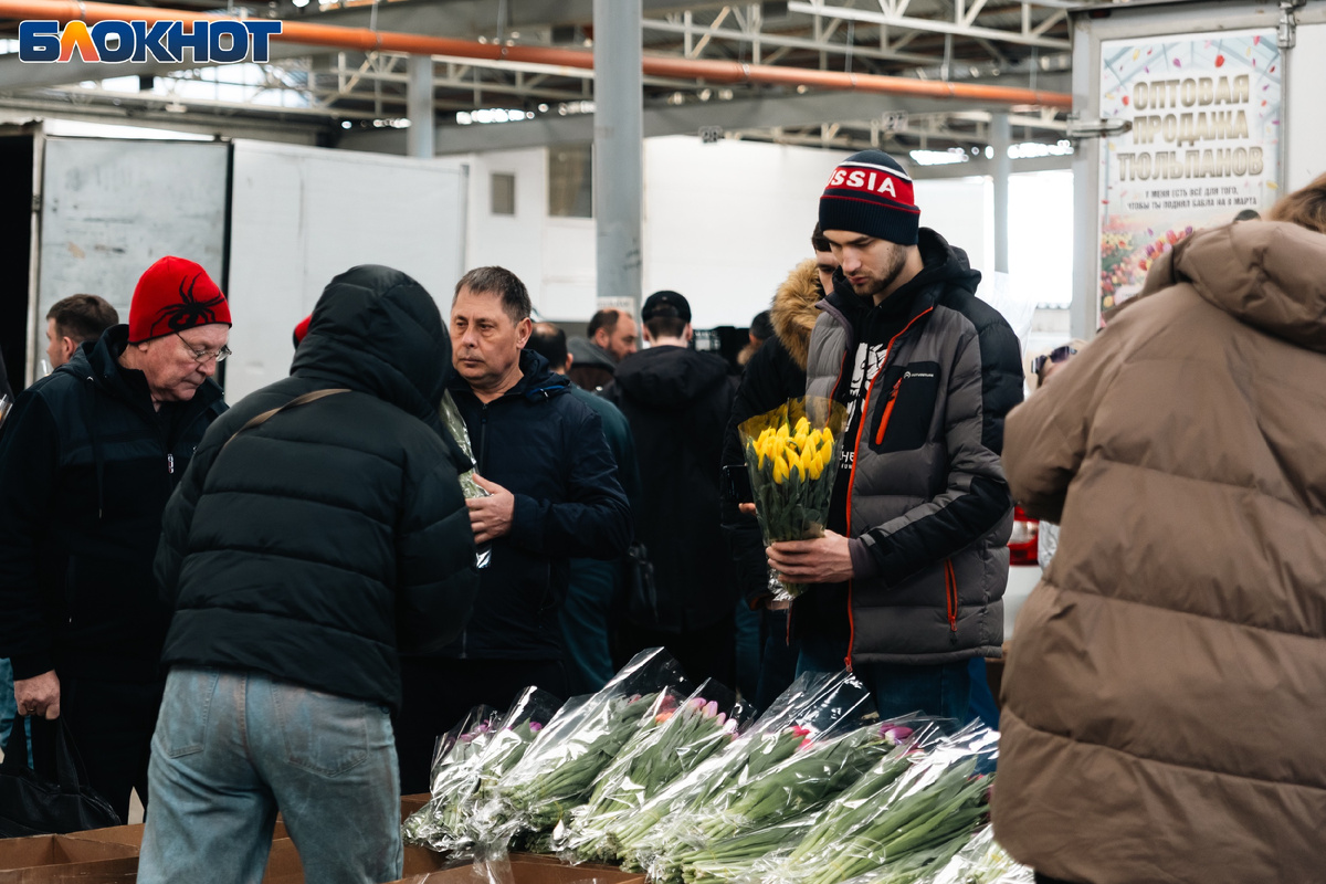 С самого утра на подъездах к ярмарке выстраивались пробки. Место для парковки найти сложно. Но желающих закупиться мимозами и тюльпанами это не останавливало. Ведь здесь прилавки просто ломятся от разнообразия. Среди покупателей были не только мужчины, но и девушки. Многие приехали на рынок именно за тюльпанами, поскольку они символизируют весну и женственность. К тому же, представлены разных размеров и цветов с большим разбросом цен. Если говорить о стоимости, то тюльпаны продавали по 70-100 рублей за штуку. Но чаще мужчины смотрели на завернутые в прозрачную упаковку наборы тюльпанов. Такой букет обходился в среднем в районе тысячи рублей. Некоторые брали оптом, так подешевле. Веточку мимозы можно было взять за 200 рублей. Скромных размеров отдавали и за 100. Также предприниматели привезли самые разнообразные букеты роз – фиолетовые, розовые, салатовые. Продают их как за 2000 рублей, так и за 5000 рублей. За заветным букетом шел нескончаемый поток людей. Вдоль длинных рядов с цветам