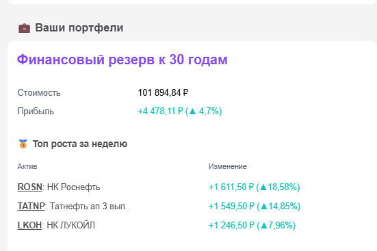 Акции Роснефти выросли на 18% за неделю! Итоги инвестиционного портфеля за неделю (52-ая неделя). Первая цель выполнена!