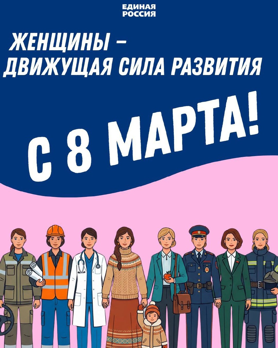 ! 8 марта — особенная дата, наполненная теплом, уважением и искренней благодарностью. В этот день отмечается Международный женский день — праздник, который символизирует признание огромной роли женщин в жизни общества, семьи и государства. 🌷 Женщина — это источник вдохновения, мудрости и силы. Благодаря вашей заботе и душевной теплоте создаётся атмосфера уюта и гармонии в семьях, а благодаря профессионализму, ответственности и целеустремлённости вы добиваетесь значительных успехов в самых разных сферах — от образования и медицины до науки, управления и общественной деятельности. Но женщина — это не только хранительница домашнего очага. Женщина — это ещё и защитница. Вы защищаете надёжные тылы своих мужей и сыновей, поддерживаете их, помогаете сохранять силу духа и веру в правое дело. И вместе с тем женщины наравне с мужчинами в разные исторические периоды защищали суверенитет и независимость нашей страны. В годы Великой Отечественной войны женщины ковали Победу в тылу — у горячих
