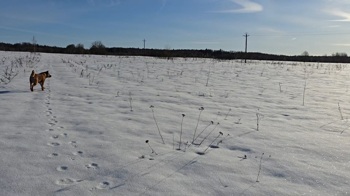 Мы с Псом Кубиком успели погулять по снежному насту, пока его солнышко не нагрело и не размягчило.