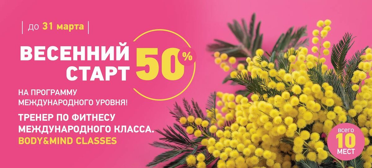 ! 🌷 В этот день хочется говорить не просто о весне, а о вас. О вашей силе, которая скрывается за нежной улыбкой. О вашем умении вдохновлять и менять этот мир к лучшему. А мы знаем, как сделать этот месяц еще приятнее и полезнее для вас! В честь праздника мы дарим вам уникальную возможность — скидку 50% на программу «Тренер международного класса» Для активации скидки напишите МТФ в комментарии и мы забронируем за вами место 💬 НАПИСАТЬ НАМ И ЗАБРОНИРОВАТЬ МЕСТО 🖥 САЙТ ПЕДАГОГИЧЕСКОГО КОЛЛЕДЖА ФИТНЕСА