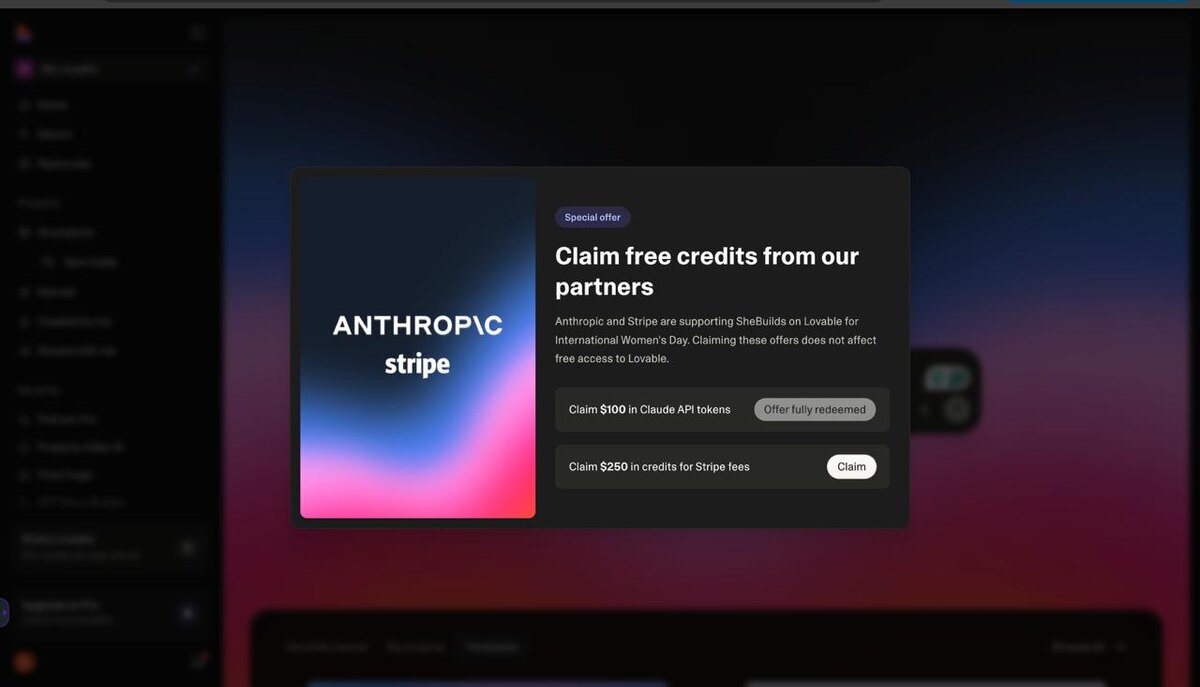 На Lovable можно сегодня билдить бесплатно. Но что важнее - это то, что можно забрать бесплатные кредиты на Claude API и Stripe.