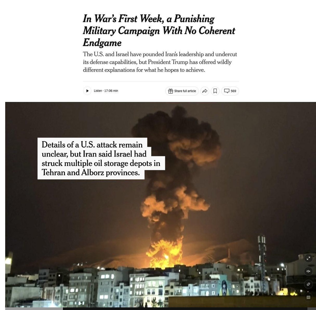 Իրանի դեմ պատերազմի առաջին շաբաթը ԱՄՆ-ին արժեցել է մոտ 6 միլիարդ դոլար, որից մոտ 4 միլիարդ դոլարը ծախսվել է զինամթերքի և հակահրթիռային համակարգերի վրա։