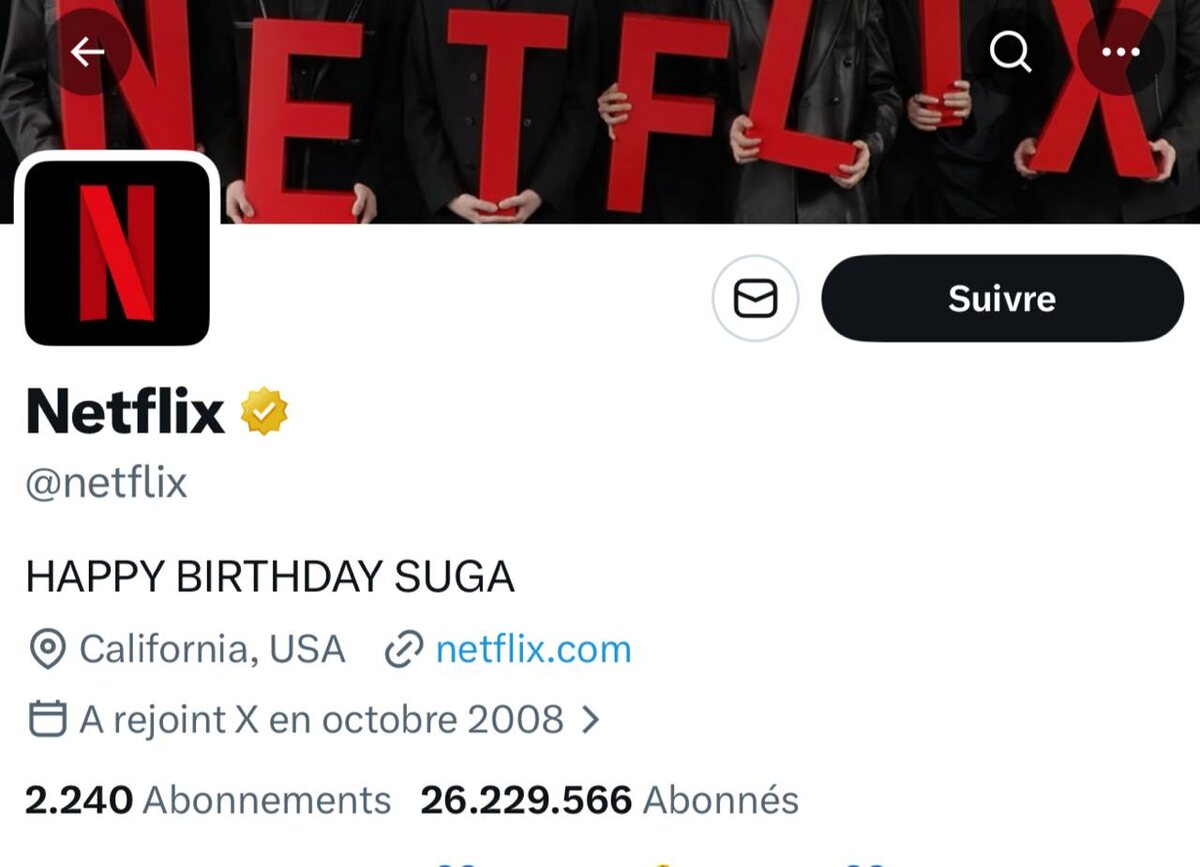 🍃 Официальный аккаунт Netflix в X обновил шапку профиля, добавив поздравление для Юнги: