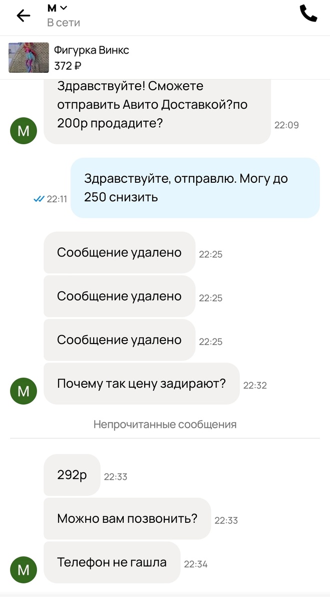 Это уже второй случай на Авито со мной. Первый был после того как я написала отзыв на покупательницу, поставив единицу. Она стала шантажировать меня порчей.