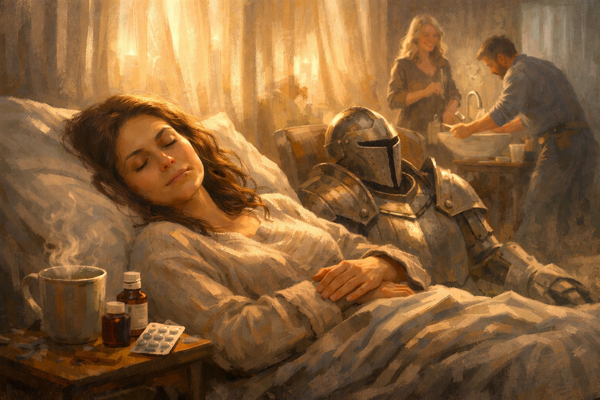 Такая, что даже мысли двигались медленно. А потом пришла температура, и тело будто прошептало: — Теперь ты полежишь. Женщина впервые за долгое время остановилась.