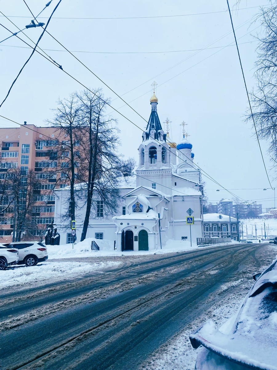 Перезвон колоколов утих, и мы продолжаем нашу прогулку, направляясь к самому началу улицы Ильинской. Начали мы свое небольшое путешествие повернув с Большой Покровской к Лыковой дамбе, и пройдя через нее, оказываемся на улице Добролюбова. Ее прежнее название – Мироносицкая – напрямую связано с находящейся здесь церковью Жён-Мироносиц. Именно эта церковь настолько поразила меня своим величием, что перенесла в начало прошлого века.