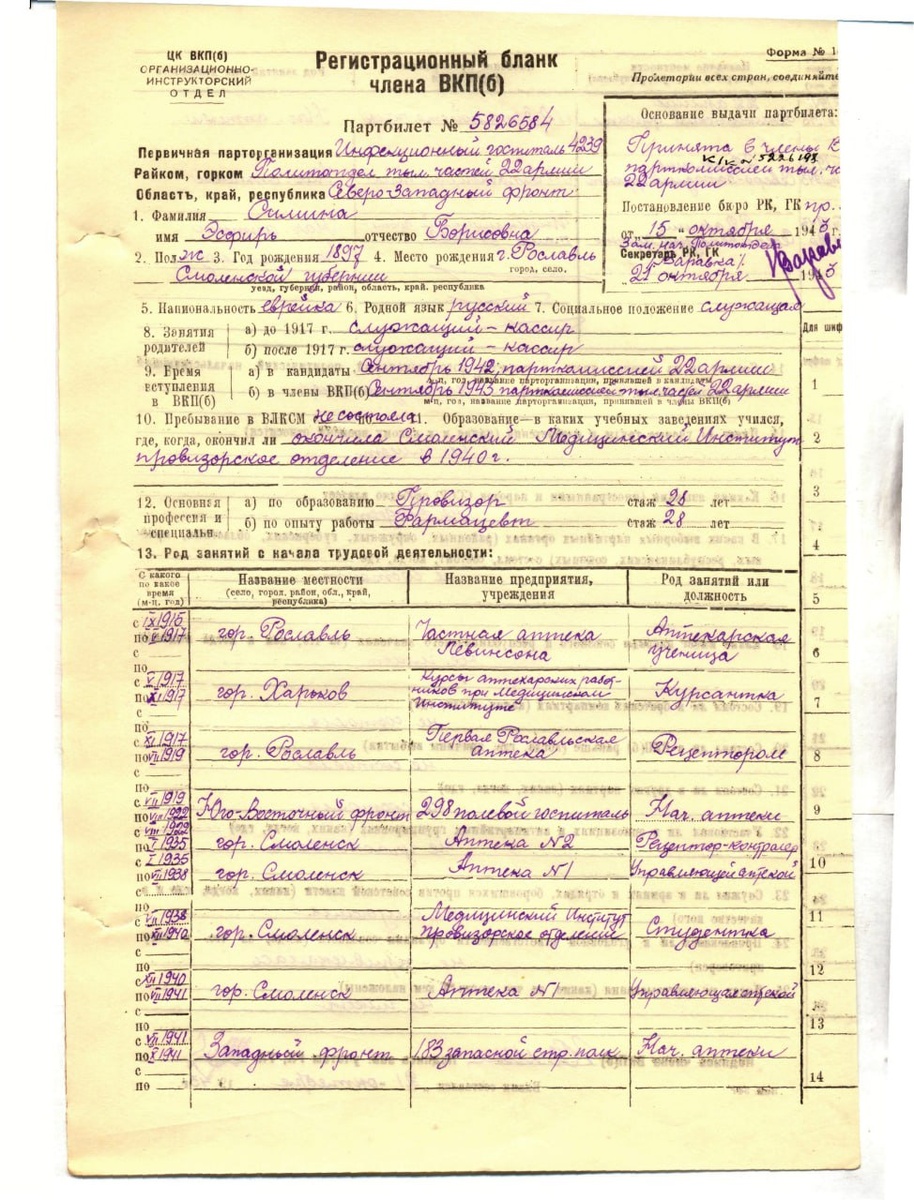 ! а также мемуары родственников и лишенцы Об алгоритме запроса в РГАСПИ и необходимых вводных для поиска писала в нескольких постах: ▶️УПД (учетно-партийных документов) коммунистов ▶️УПД кандидатов в коммунисты Этот пост о запросе УПД и не только на лиц, вступивших в партию на фронте, на примере документов сестры прадеда капитана мед. службы Симиной Эсфири Борисовны небольшая некоммунистическая предыстория Отец Эсфири (а также прадеда Александра, Марка, Дворы и Вульфа) Симин Борис Лейбович был лишен избирательных прав. Об этом мне стало известно из мемуаров его правнука Черейского Михаила "Дракон с гарниром". Вот что он писал о об этом: При этом никто из нашей семьи не состоял в партии. Папа был одним из двух беспартийных на своем курсе в академии – более ста человек, дедушка (Марк Борисович) тоже как-то ухитрялся не вступать, хотя при его служебном положении и полковничьем чине это было в высшей степени необычным. Избегали членства они не по каким-то идейным соображениям (которы