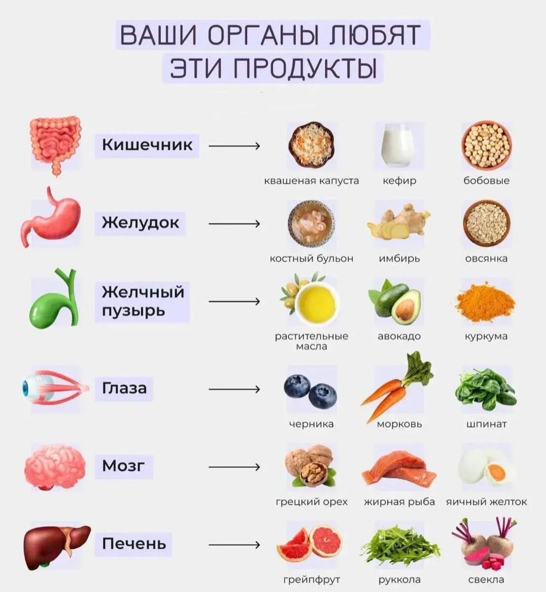 ❤️ Мы едим каждый день, но редко думаем о том, что разные продукты буквально питают разные системы организма. Вот короткая шпаргалка. Народные рецепты | Кирпикова