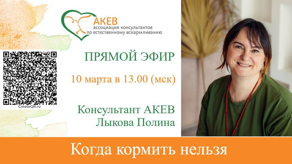 ! ⏰10 марта в 13.00 (мск) Лыкова Полина приглашает в прямом эфире поговорить на очень важную тему: «Когда нельзя кормить. Противопоказания для грудного вскармливания.» Лыкова Полина Петровна, консультант-наставник АКЕВ, специалист по кормлению, прикорму и сну. Автор книг "Грудное вскармливание: мифы и реальность" и "Отлучение без мучения". Вся информация о спикере на сайте АКЕВ - clck.ru/3SKaKg Что обсудим: - Абсолютные и временные противопоказания к кормлению со стороны матери и со стороны ребенка. - Особые состояния, вызывающие вопросы (болезни, лечение и вакцинация матери, вредные привычки, беременность). - Состояния, которые ошибочно считают противопоказаниями для кормления. - Где проверить информацию о своих ограничениях или их отсутствии. Эфир пройдет в Контакте на странице АКЕВ vk.com/akev_info До встречи в эфире!