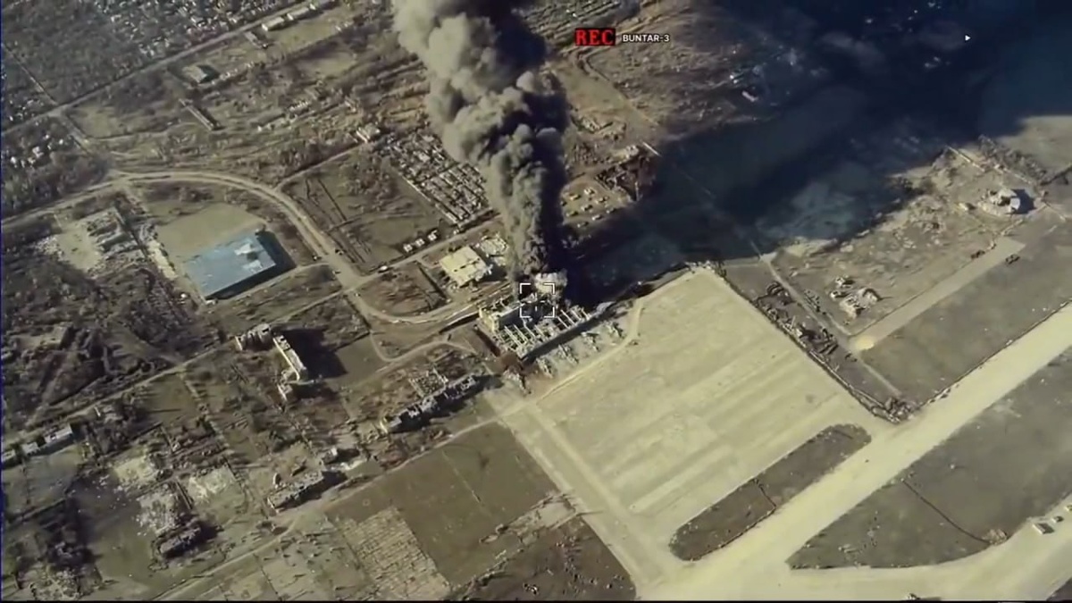 Последствия вчерашнего ракетного удара по Донецкому аэропорту, снятые с украинского разведывательного БПЛА «Бунтарь-3