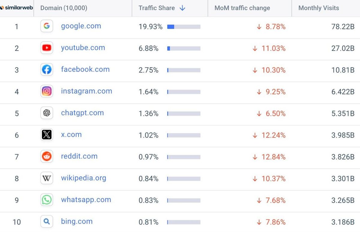 Согласно анализу Similarweb, интернет-трафик в феврале снизился на большинстве площадок, однако у ChatGPT падение оказалось минимальным. Сравнение с январём показывает рост среднесуточных визитов: • Январь: 5,723 млрд за 31 день — 0,185 млрд визитов в сутки • Февраль: 5,351 млрд за 28 дней — 0,191 млрд визитов в сутки Среднесуточный трафик ChatGPT увеличился на 3,24%. Сервис восстановил позиции после снижения осенью и зимой. После релиза GPT-5.4 компания вышла из режима «красного кода», объявленного в декабре. https://dzen.ru/id/5c0e38ff46ef5c00aaa80527