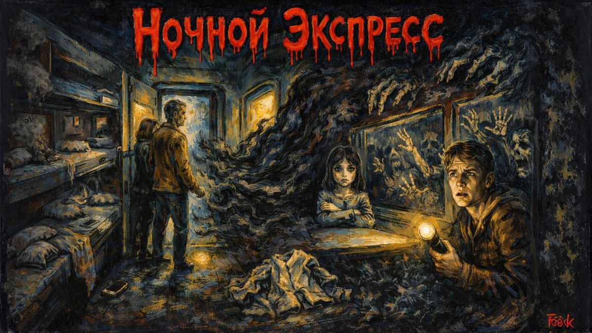 Вокруг — звуки. Скрежет, шёпот, хлюпанье. Что-то ползало по купе. Что-то касалось её — холодное, влажное.