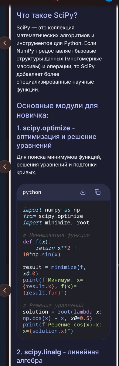 Захотелось мне поковыряться в Scipy-библиотеке 8 марта. Почему именно 8-го? А как ещё провести этот день, когда наши соотечественницы сотню лет назад боролись за права женщин? Недолго думая, я попросила рассказать о библиотеке своего репетитора (бесплатного и очень послушного!). Итак: