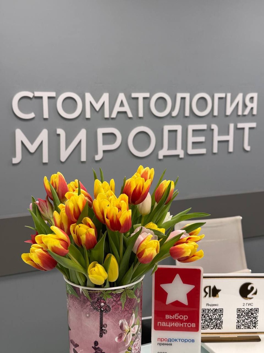 ! 🌷 В этот весенний день хочется пожелать вам не только цветов и комплиментов, но и самой главной драгоценности — ослепительной улыбки! ✨ Пусть ваша улыбка сияет ярче солнца, освещая путь к счастью и исполнению самых заветных желаний. Помните, что забота о себе — это лучший подарок, который вы можете сделать. Пусть каждый день будет поводом улыбаться широко и искренне! А мы всегда рядом, чтобы ваши улыбки оставались здоровыми и красивыми. 💐 С заботой о вас, команда Миродент! 🦷✨
