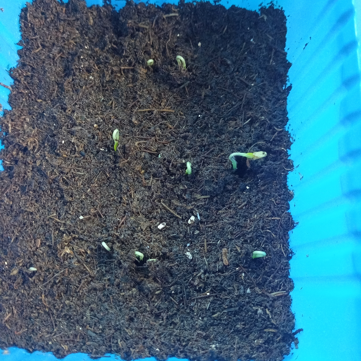 Включила подсветку, мои перчики уже начали вылезать. Помогла освободиться самому первому вылезшему перчику от шлемика. Я это делаю так - опрыскиваю его водой и когда шлемик немного набухнет подцепляю его зубочисткой или пинцетом. Только аккуратно, чтобы не оторвать семядоли. А то развитие будет неправильное. Шлемик оставлять ни в коем случае нельзя. То же самое проделываю со всеми культурами. А вообще, чтобы шлемики сами снимались, надо при посеве уплотнять грунт, которым закрываете семена. Все-таки препятствия будет больше и тогда они сами снимутся.
