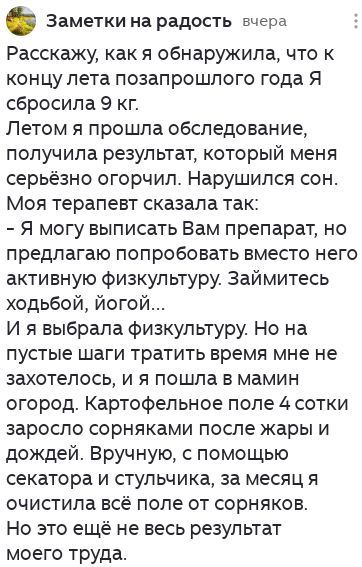 Каждый раз читая комменты, я копирую себе часть. Потому что описан ценный опыт, который может помочь другим. Иногда, на основе какого-то сохраненного текста или переписки рождается статья. Но чаще нет. Чаще пропадает где-то в черновиках. И это очень жаль! Вот разве можно допустить, чтобы затерялся где-то в комментах такой ценный рассказ читательницы "Заметки на радость" ко вчерашней статье: Вот разве можно дать такому опыту позабыться где-то в переписках??? Хочется сохранить! И у нас на сайте KgMinus.ru мы тоже обсуждали, что как же хочется иметь возможность сохранить. Что переписка в комментах иногда важнее основного текста, потому что в ней возникает волшебство. Иногда в слова оформляется что-то неожиданное, о чем и не думал. Хочется сохранить живой комментарий, как он родился именно в ту минуту, именно в той его форме. Ведь слова почему-то подбираются именно эти, а не другие. Ведь если их редактировать и "причесывать", они теряют часть спонтанной жизни. Превращение их в пост, в ст