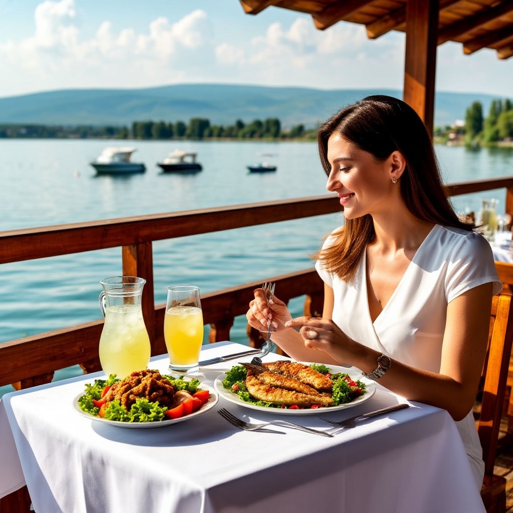 Заказала рыбу, салат, и пока ждала, сидела на террасе, смотрела на воду и слушала плеск волн. А когда принесли еду — это было невероятно! Рыба таяла во рту, овощи пахли летом, а вид на озеро дополнял картину идеального обеда. Я поняла, что счастье может быть таким простым: свежая рыба, тишина и красота вокруг.