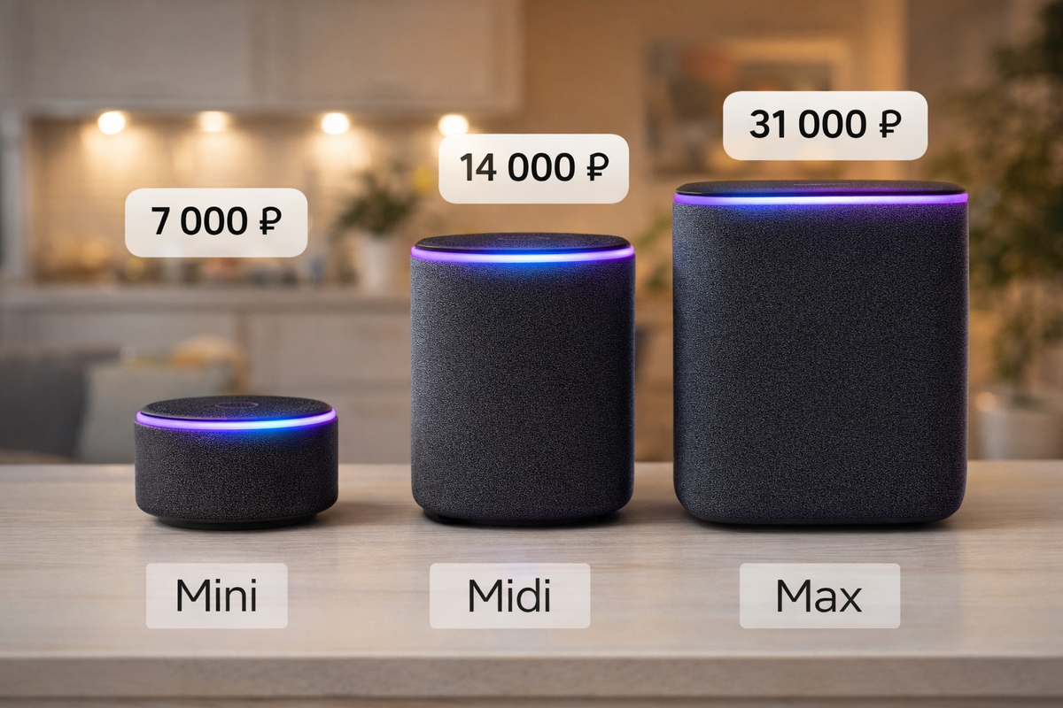 Год назад купил первую Яндекс Станцию Мини и думал, что баловство. Попросил Алису включить свет, поставить таймер на макароны, разбудить в семь утра. Через неделю уже не представлял, как жил без этого. Сейчас дома три разные Станции, и точно знаю, какая для чего нужна. Линейка Яндекса разрослась до девяти моделей. Цены от 5 до 43 тысяч рублей. Помогу разобраться, чтобы не переплатили за ненужное. Станция Лайт 2 за 5-6 тысяч - простой вход в мир Алисы. Звук скромный, 5 ватт, но для кухни или детской хватает. Есть версия с LED-дисплеем, показывает время и эмоции помощника. Станция Мини 3 за 7 тысяч - шаг вперед. 10 ватт, приличный звук для небольшой комнаты, четыре микрофона ловят голос даже из дальнего угла. Для первой колонки при ограниченном бюджете - оптимальный вариант. Миди за 14 тысяч - лучшее соотношение цены и возможностей во всей линейке. Три динамика, 24 ватта, встроенный Zigbee-хаб для умного дома и Room Correction, которая подстраивает звук под помещение. Главное - Миди един