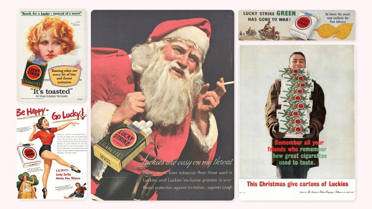 Одна из них — American Tobacco: она рекламировала свои сигареты Lucky Strike как средство для похудения, называла их «факелами свободы» для женщин и даже заставила курить Санту vc.ru/marketing/169563