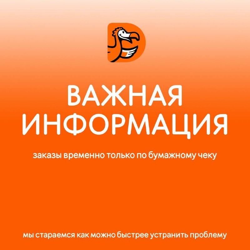 Друзья, из-за временного технического сбоя в системе выдача заказов сейчас осуществляется только по бумажному чеку