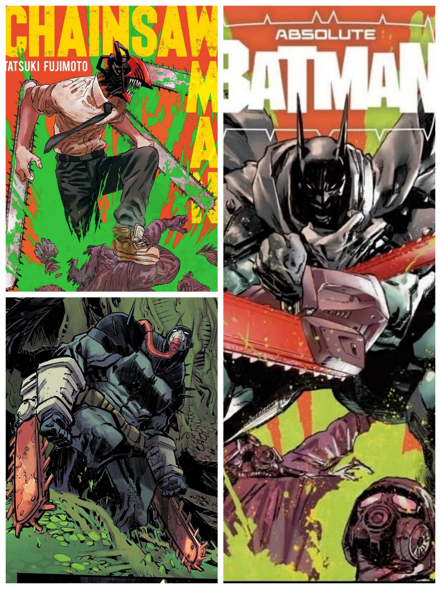 Недавно президент DC Comics(Джим Ли) дал интервью, где он очень… вот прям капец как нахваливал японскую мангу, после этого резко тригернулись фанаты” Человека-бензопилы” и не даром ведь, отыскали вот такую обложку комикса” Абсолют Бэтмен”, ничего не напоминает? После такой находки подключились к поиску и фанаты берсерка, откопав уже отсылку на обложку своего первого тома манги А теперь добавим, допустим, какую-то новость о том, что Netflix начал упорно сотрудничать с японскими студиями и уже складывается впечатление, что Америка начала предпринимать действия для сотрудничества с Японей. Ну или поняли, что один миллиард долларов, заработанный лишь аниме-фильмами, звучит очень вкусно