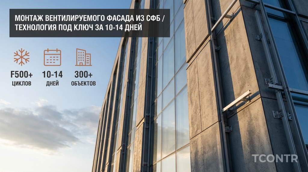Да, это ключевое преимущество вентилируемых фасадов. В отличие от «мокрых» процессов, где нужна плюсовая температура, монтаж панелей и декора из архбетона на подсистему возможен до -15°C. Мы используем сухой механический крепёж, поэтому сезонность не влияет на качество.