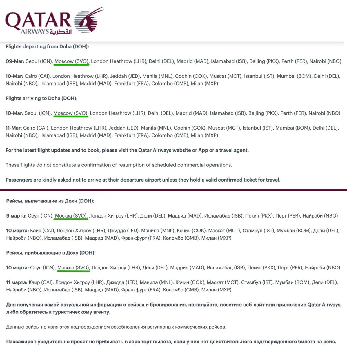 🇶🇦 Авиакомпания Qatar Airways подтвердила намерение лететь завтра по маршруту Доха ↔️ Москва