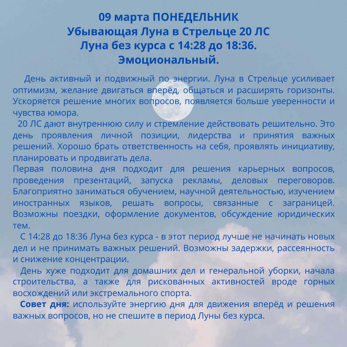 Прогноз на 09 марта 2026 г.