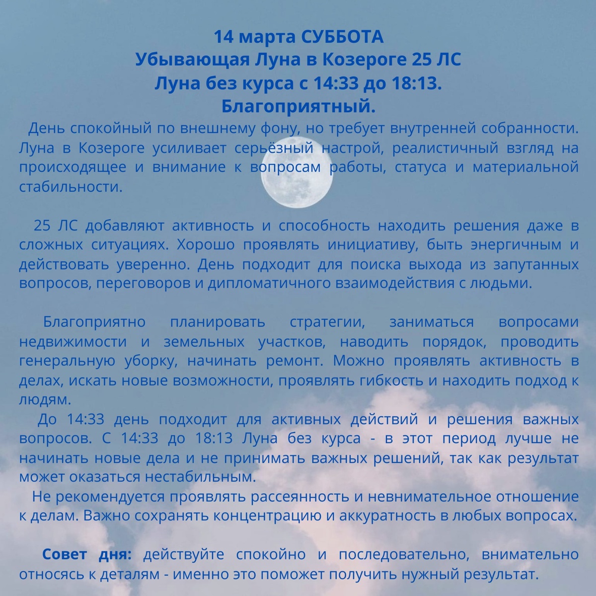 Прогноз на 14 марта 2026 г.