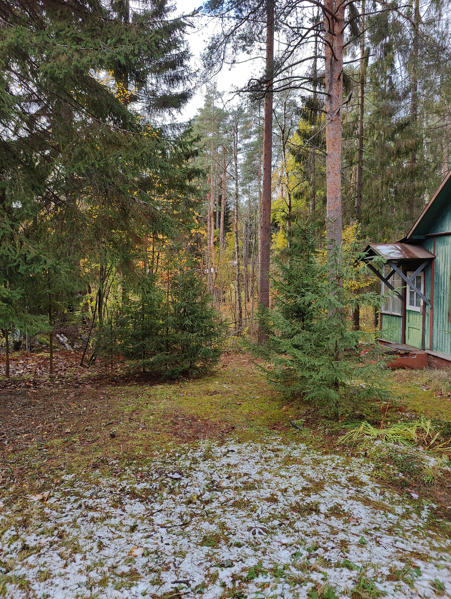 И в октябре дождалась я таки свой участок! Гуляем с дочкой, вижу водоем, частично ряской зарос, на берегу сосны, участок за забором с домиком старым.