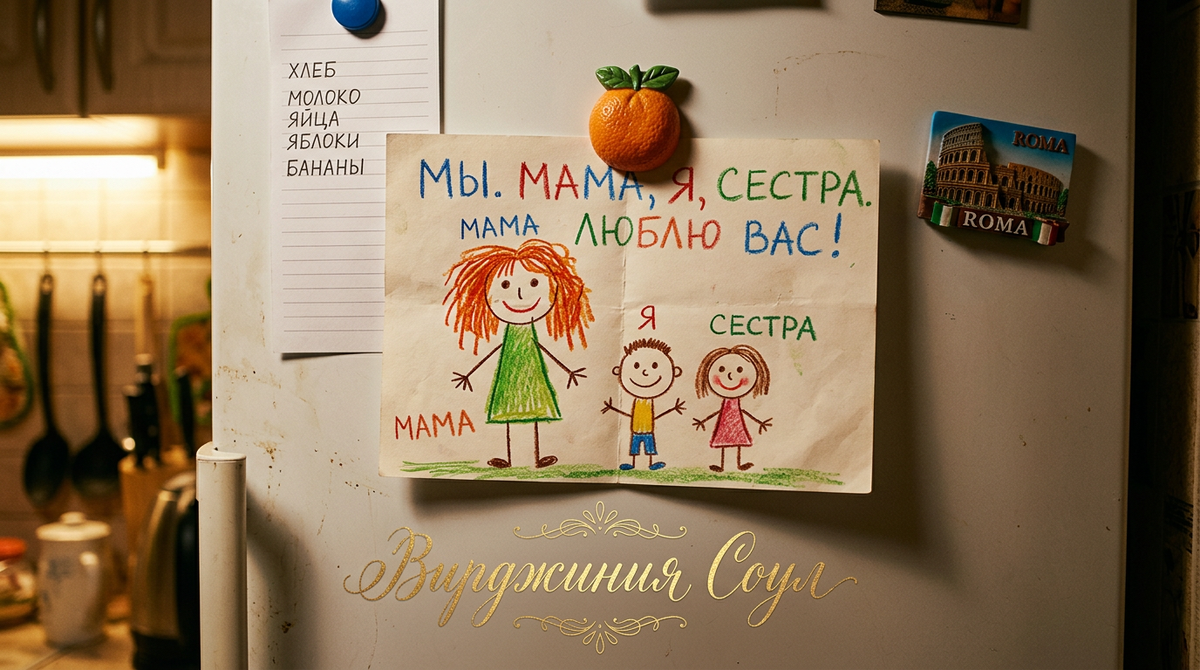 Я взяла рисунок. Держала его и смотрела, и внутри что-то сдвинулось, как мебель в соседней комнате: не видишь, но слышишь. Приложила рисунок к холодильнику, закрепила магнитом.