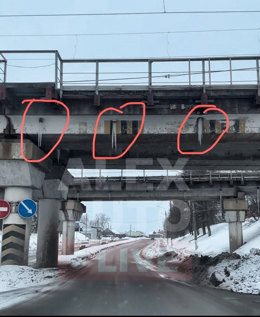 Будьте осторожны, такая хр…вина может и крышу в легкую пробить! Огромные сталактиты свисают с ж/д моста в районе Двориковского шоссе