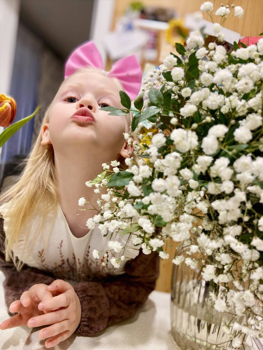 Однако традиционная Сонина фотосессия с цветочками состоялась, даже несмотря на то, что цветы уже немного «уставшие» после полетов. В общем, с праздником, девочки! Будьте счастливы! И пусть в доме будет весело (и хотя бы одна целая ваза) 🥰 P.S. сникерс «Добро Женя» (подарен заранее, вскрыт по показаниям). Я добрая, счастливая и шоколадная. Всех с праздником! 🍫🌷