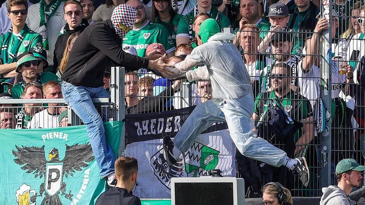 ! В матче второй Бундеслиги «Мюнстер» — «Герта» (1:2) случился необычный инцидент с участием фанатов и системы VAR. 📺 В первом тайме главный арбитр Феликс Бикель не увидел нарушения при падении нападающего «Герты» Микаэля Кюизанса в чужой штрафной, но судьи на VAR решили позвать его к монитору. Арбитр остановил игру и пошёл смотреть эпизод, но увидел перед собой чёрный экран монитора. Как сообщает Waz, причиной отключения экрана стали фанаты хозяев, которые оборвали провод. 🥅 Бикель не стал дожидаться починки неисправности и положился на решение коллег, поставив пенальти. На 4-й добавленной к первому тайму минуте его успешно реализовал игрок «Герты» Фабиан Резе. @rttv_spor